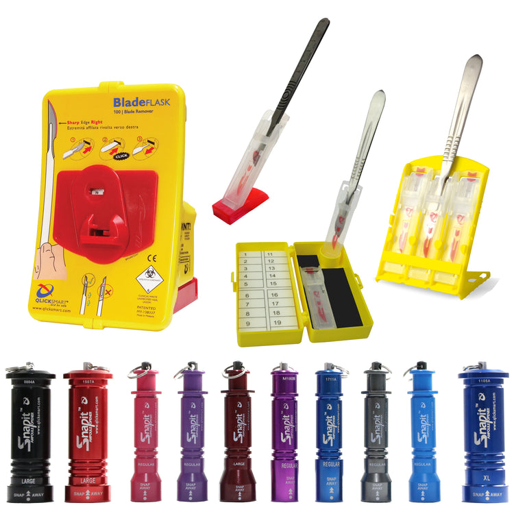 Qlicksmarts Knivbladsavdragare tar snabbt och säkert bort skalpellbladen.